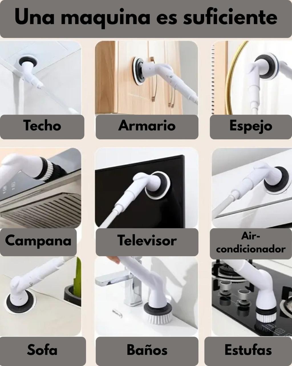 Cepillo eléctrico limpieza hogar 6 cabezales + mango largo, ¡Limpieza profunda sin esfuerzo! Cepillo eléctrico con mango extensible y 6 cabezales para cada rincón de tu hogar🧼 Descripción¡Olvídate de arrodillarte o forzarte al limpiar! Este cepillo eléctrico de alta velocidad con 6 cabezales intercambiables y mango extensible es la herramienta ideal para limpiar a fondo baños, pisos, azulejos, juntas, lavabos y mucho más.Gracias a su motor potente y su diseño, elimina la suciedad más difícil sin esfuerzo. No es un cabezal rotatorio, pero su vibración de alta velocidad garantiza una limpieza eficaz y cómoda.Perfecto para personas mayores, con movilidad reducida o quienes buscan ahorrar tiempo. Solo debes encenderlo y dejar que haga el trabajo por ti.✅ Beneficios📏 Mango extensible (hasta 95 cm): limpia sin agacharte ni arrodillarte🧽 6 cabezales intercambiables: ideales para esquinas, pisos, curvas y juntas💦 Resistente al agua: úsalo con total confianza en zonas húmedas⚡ Alta velocidad de limpieza🔌 Carga USB incluida🧼 Ideal para baños, cocina, lechadas, estufas, ventanas, vehículos y más📦 Contenido del paquete1 Cepillo eléctrico de limpieza6 cabezales de limpieza intercambiables1 Cable de carga USB⚙️ Especificaciones técnicasColor: GrisMaterial: Aleación de aluminioTamaño del producto: 95 × 13 × 8.5 cmPeso neto/bruto: 398.4 gTipo de carga: USB